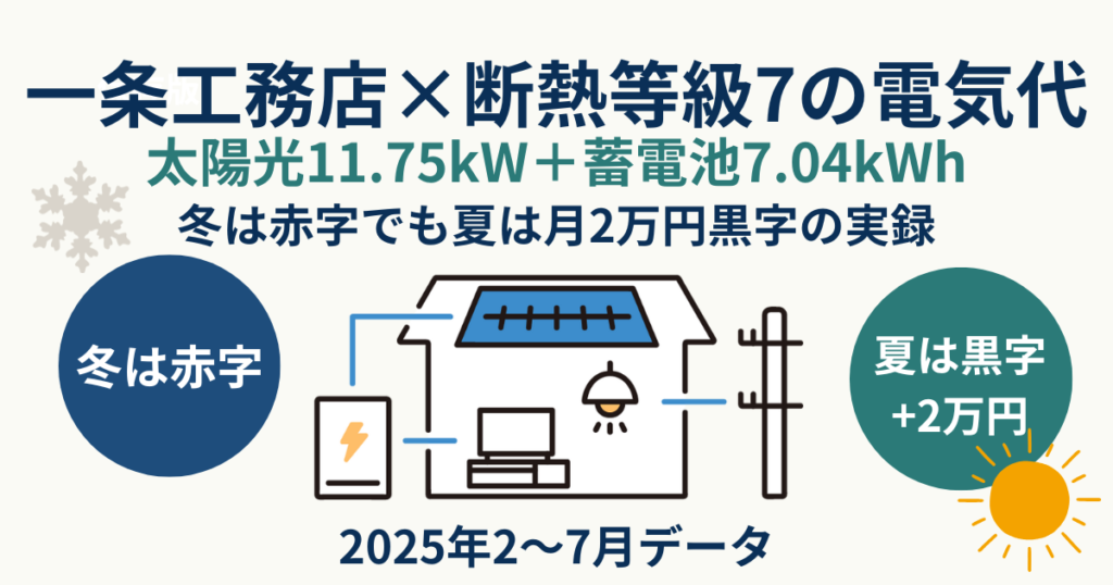 一条工務店×断熱等級7の電気代【太陽光11.75kW+蓄電池7.04kWh】冬は赤字でも夏は月2万円黒字の実録