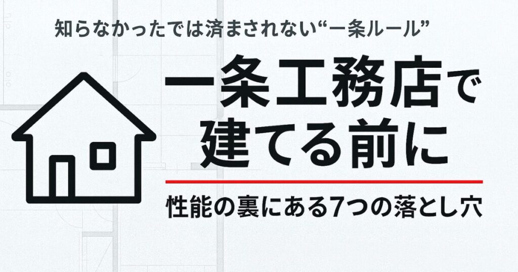 - 一条工務店で建てる前に。知らなかったでは済まされない、7つの意外なルールと落とし穴一条工務店の「一条ルール」を施主目線で整理。総二階・半マス・窓・Wi-Fi・網戸などの制約と、入居半年の実例から学んだ回避策を7つに凝縮。