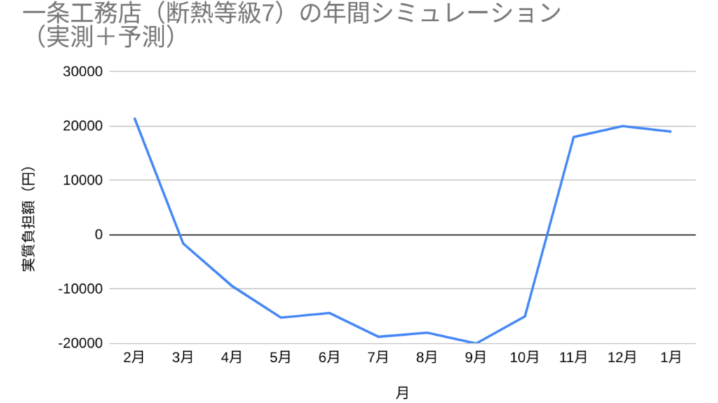 ただし、春以降は一気に黒字化し、年間トータルではプラスになるケースが多いです。断熱等級7の家なら消費電力自体も抑えられるため、赤字幅は一般住宅より小さくできます。