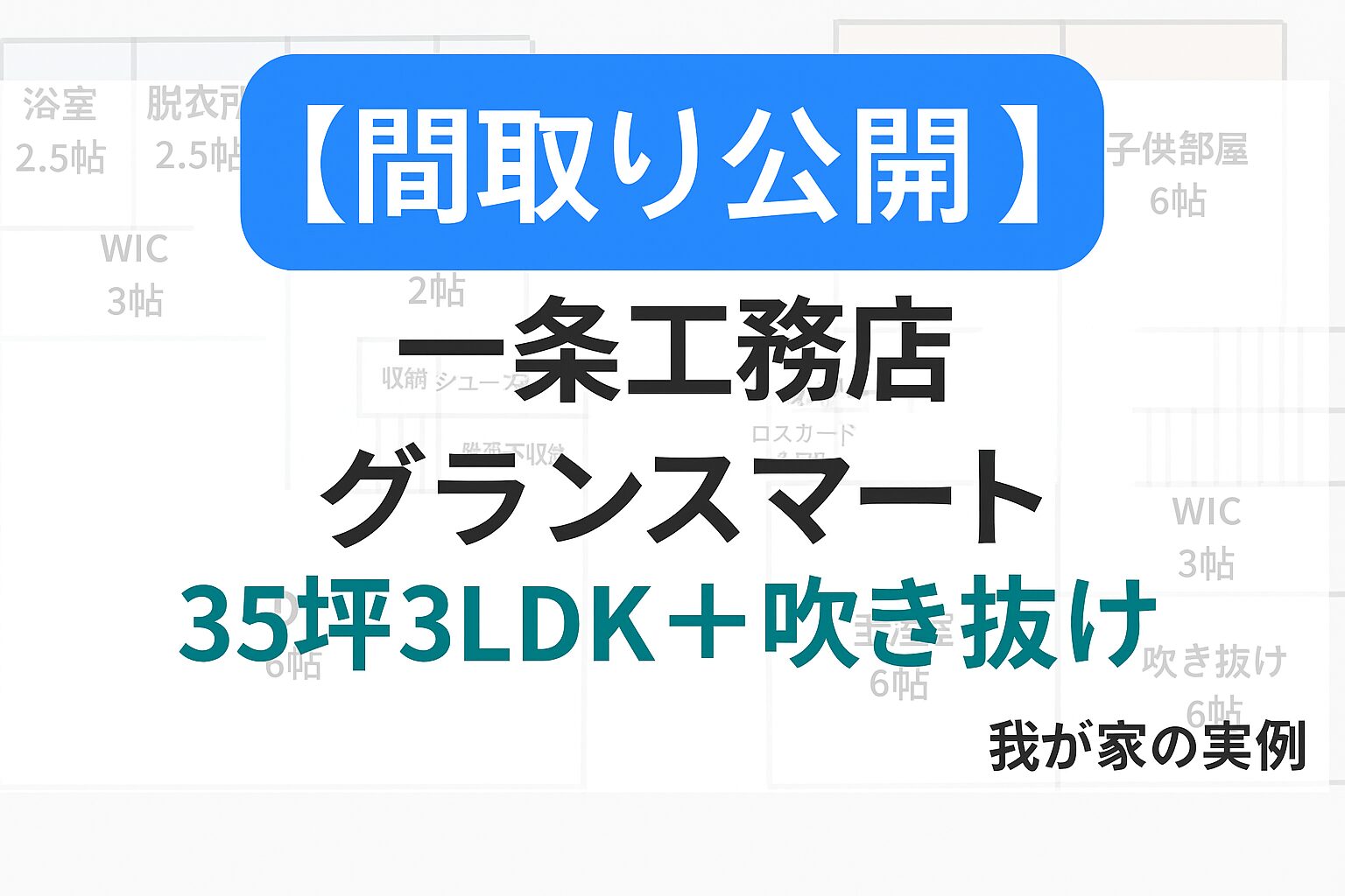 我が家は一条工務店「グランスマート」で延床約35坪(115.79m²)、3LDK+吹き抜けの間取りを採用しました。夫婦+子ども2人の4人暮らしを想定し、家事動線を特に重視。
